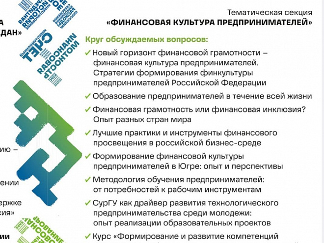 Региональный форум финансовой грамотности состоялся 28 и 29 ноября в Сургутском госуниверситете. На его площадке прошли стратегические сессии, круглые столы, мастер-классы, игры, тренинги, краткосрочные интенсивы, лектории и проектные лаборатории. Все мероприятия деловой программы были направлены на формирование представлений о таких базовых для жизни финансовых категориях, как формирование и ведение бюджета, подушка безопасности, механизмы использования продуктов и услуг финансового рынка. В спектр обсуждаемых вопросов попали также программы долгосрочных сбережений, способы предупреждения финансового мошенничества.