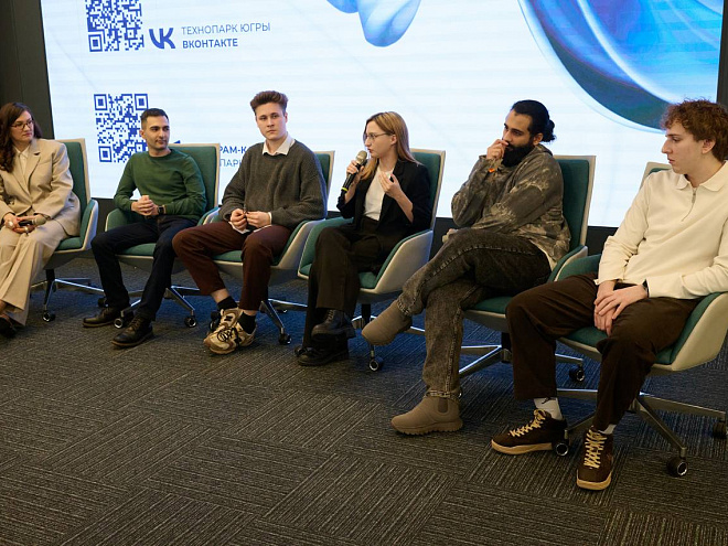 Практическая часть мероприятия включала две диалог-лекции. От Марии Залевской участники получили обзор региональных стартап-инициатив и кейсов успешных проектов. Яркой иллюстрацией возможностей экосистемы стали выступления действующих резидентов Технопарка: Ростислава Сазикова - о портфеле проектов «ЕДРО», Виктории Масюковой - о проекте по созданию приложения "SLED", победителя Акселератора технологических стартапов в Югре 2025 года Дениса Лысенко - о проекте Azimut AI.